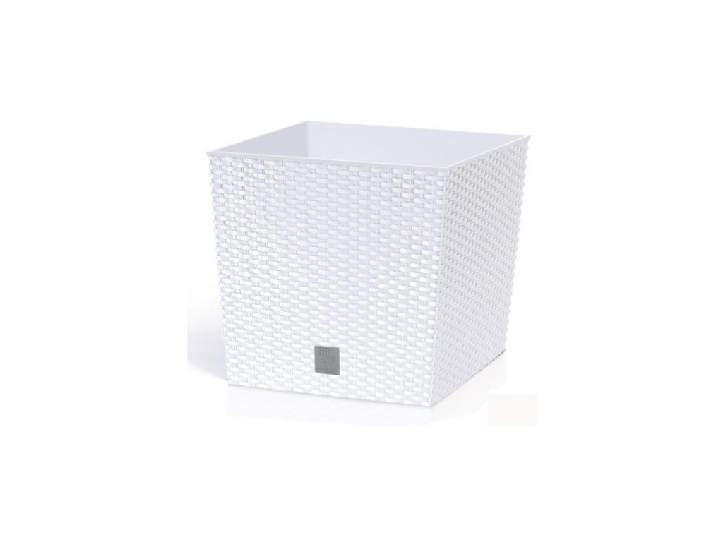 Der Kunststoff-Blumentopf RATO LOW, der das Rattanweben originalgetreu imitiert, eignet sich für Innenräume, Terrassen und Balkone.