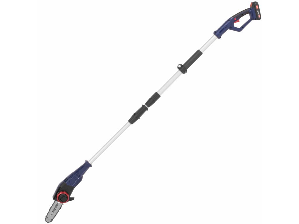 Li-Ion-Akku 18 V (ohne Memory-Effekt, mit minimaler Selbstentladung und langer Lebensdauer); Teleskopstiel (Längenverstellung: 1.820 - 2.650 mm, Sägereichweite: 4 m).