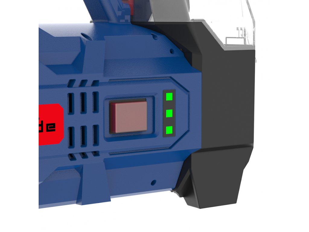Aufbau: Flügelrad aus Thermoplast (NORYL®), Batteriekasten, Griff zum bequemen Tragen.