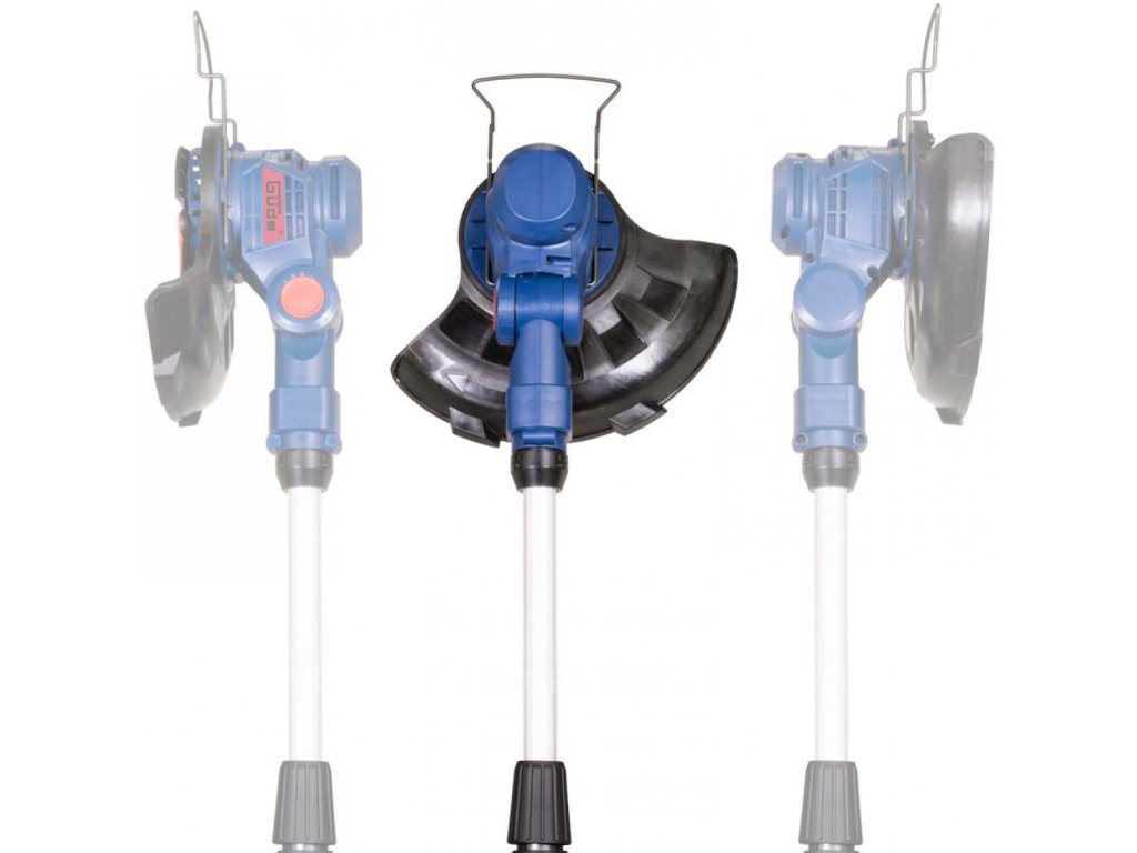 Positionierbarer Schneidkopf (seitliche Drehung ± 90º, 5-Grad-Kopfwinkeleinstellung 0 - 90º); Teleskopstiel (individuelle Längeneinstellung im Bereich von 1.100 - 1.390 mm).