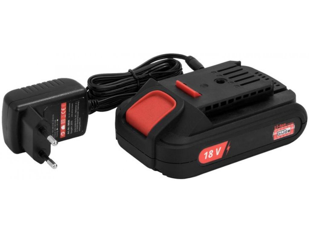Zubehör: Ladegerät 0,5 A/h, Hackmesser (20), Li-Ion-Akku 18 V/2,0 Ah.