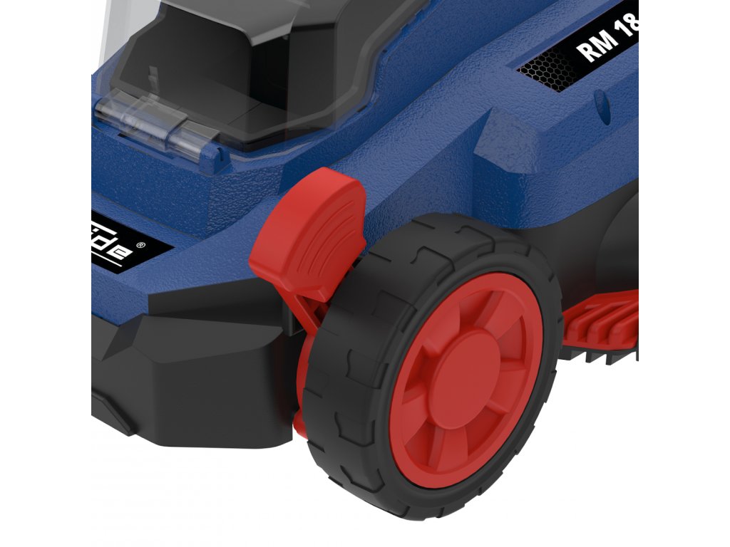 Berührungsloser BRUSHLESS DC-Motor • Zentrale Schnitthöhenverstellung (5 Stufen, Bereich: 25 - 75 mm).