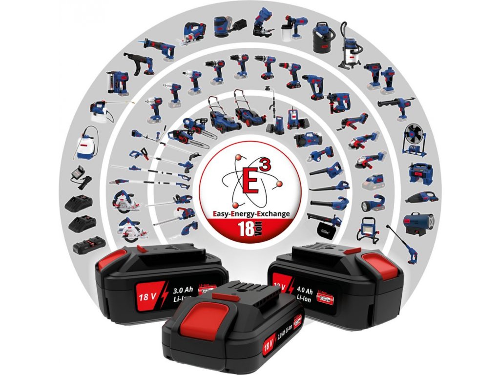 Optionales Zubehör: Batterien AP 18-20 (58555), AP 18-30 (58556), AP 18-40 (58557); Batterieladegeräte LG 18-05 I (58539), LG 18-23 (58548), LG 18-30 (58547), LG 2-18-30 (58549).