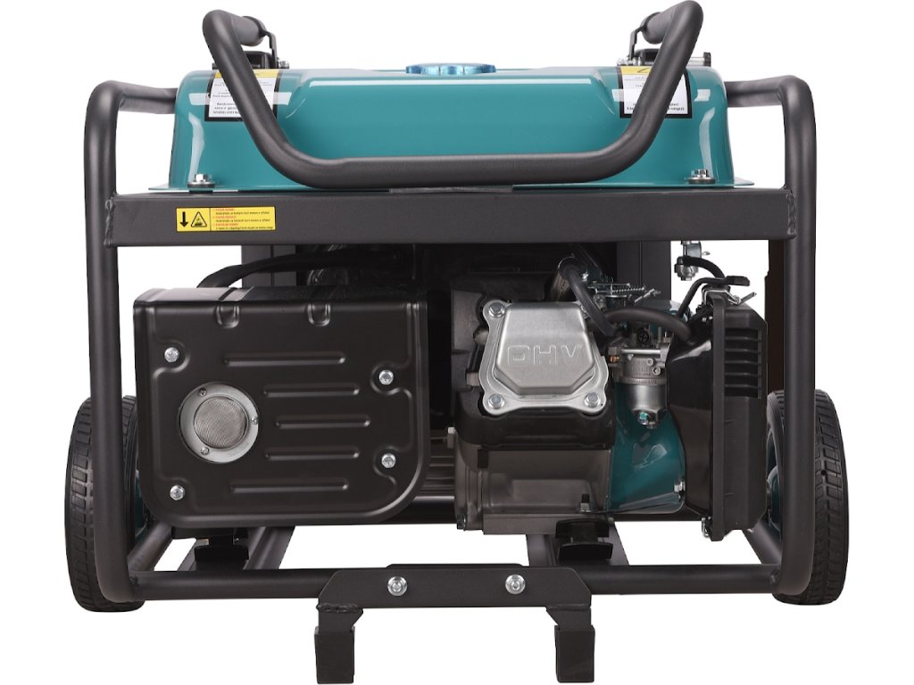 Durch den klappbaren Griff und die Vollgummiräder, die im Lieferumfang enthalten sind, lässt sich der Generator ähnlich wie eine Reisetasche mit Griff und Rollen einfach an den Einsatzort transportieren.