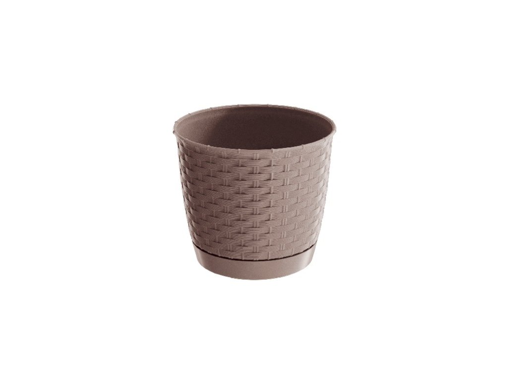 Der Kunststoff-Blumentopf RATOLLA ROUND, der das Rattanweben originalgetreu imitiert, eignet sich für Innenräume, Terrassen und Balkone.