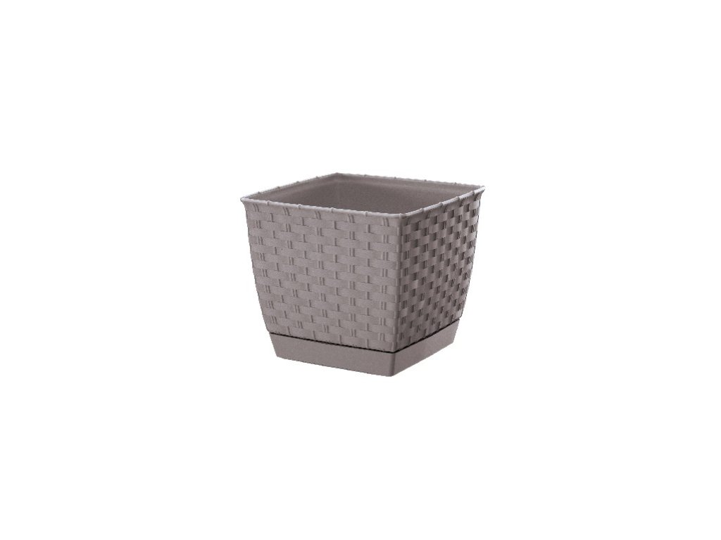 Der Kunststoff-Blumentopf RATOLLA SQUARE, der das Rattanweben originalgetreu imitiert, eignet sich für Innenräume, Terrassen und Balkone.