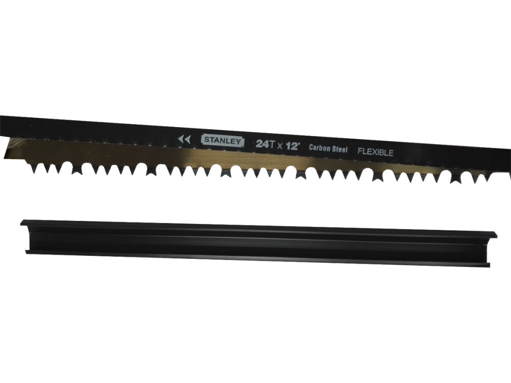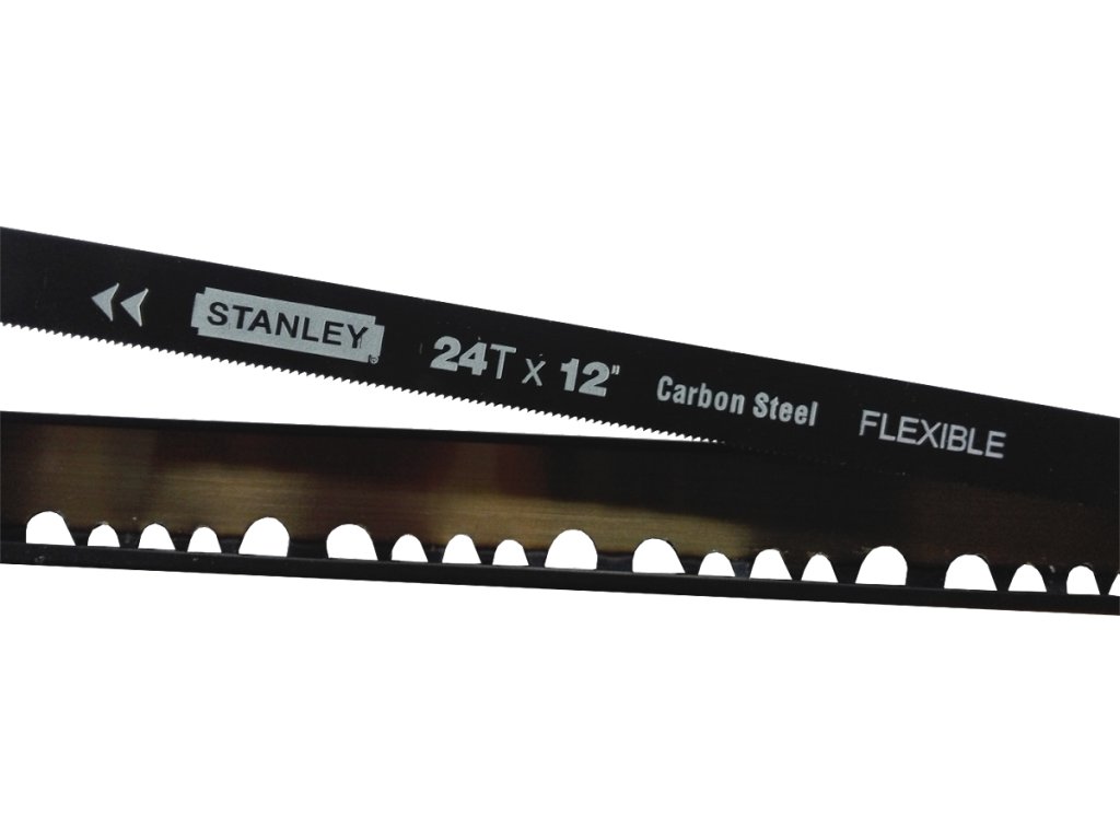 STANLEY-Bogensäge, mit verdrillungs- und biegungssteifem Stahlrahmen mit ovalem Querschnitt. Der Schutzgriff schützt die Hand vor Beschädigung. Das Sägeblatt kann mithilfe von Flügelmuttern einfach und schnell am Rahmen befestigt werden. Die Form des Bogenrahmens macht tiefe Schnitte möglich (z. B. Balken mit großen Durchmessern). Im Lieferumfang enthalten ist 1 Holz- und 1 Metallsägeblatt. Abmessungen: 300 mm.