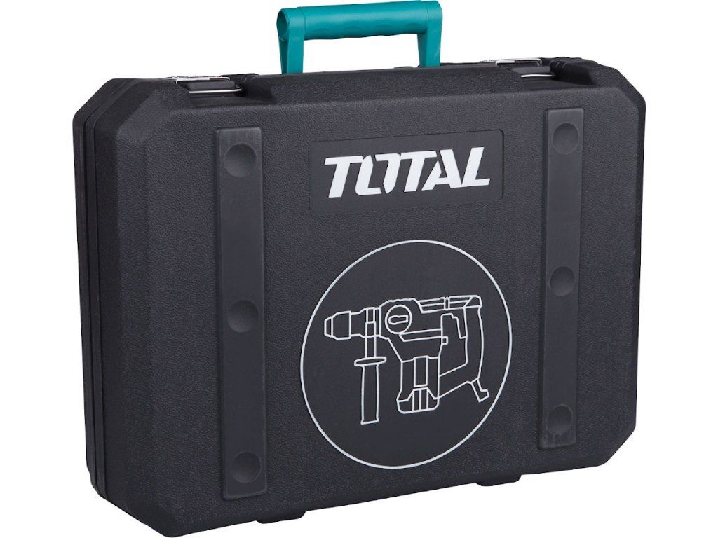 Bohrhammer und Meißel für anspruchsvollere Bohrungen in Beton und Mauerwerk, leichtes und mittelschweres Meißeln in Mauerwerk und Beton sowie das Abhacken von Fliesen oder Putz. Dieser Hammer verfügt über ein massives Ganzmetallgetriebe. Mit dem verstellbaren Griff können Sie den Griff nach Bedarf einstellen. Die Schlagkraft beträgt 5,5 J. Der Hammer ist mit einer Meißelarretierung ausgestattet, die den Meißel während des Hackens in der gleichen Position hält. Der gefederte, rutschfeste, gummierte Griff reduziert Vibrationen beim Arbeiten. Er ist mit einem SDS Plus-Griff, 850 U/min und 4400 Hammerschlägen/min ausgestattet. Er wird in einem Koffer geliefert und der Hammer enthält auch 3 Stück Bohrer und 3 Stück Meißel. Er ergänzt die erfolgreiche Bohrhammer-Serie von TOTAL Tools.