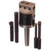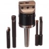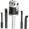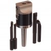 Der Kopf dient zum genauen Bohren von großen Löchern in Werkstücken, deren Form und Position der Löcher keine Drehbearbeitung ermöglicht. Der Kopf mit einem Außendurchmesser von 50 mm mit dem MK2-Klemmkonus ist mit beweglichen Schlitten und einer mikrometrischen Verschiebeschraube ausgestattet. Kopfgröße ø50x72 mm, Gesamtlänge 150 mm, Gewinde M10x1,5 mm im MK2-Konus, Messer (Durchmesser 12 mm) können parallel oder senkrecht zur Achse eingespannt werden. Im Set enthalten sind: Kopf, 3 Axialmesser und 1 Radialmesser. In einem Kunststoffkoffer verpackt.