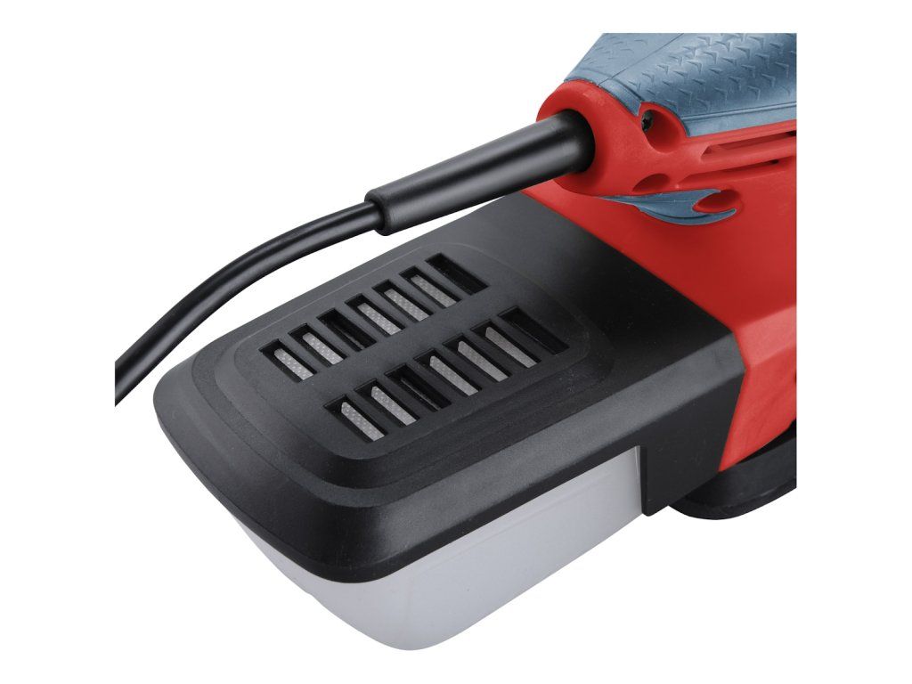 Spannung/Frequenz 230 V/50 Hz, Leistungsaufnahme 220 W, Drehzahl 13.000/min, Schleifflächendelta 148 × 105 mm, Schleifpapierdelta 148 × 105 mm, Schleifgewicht 1,1 kg.