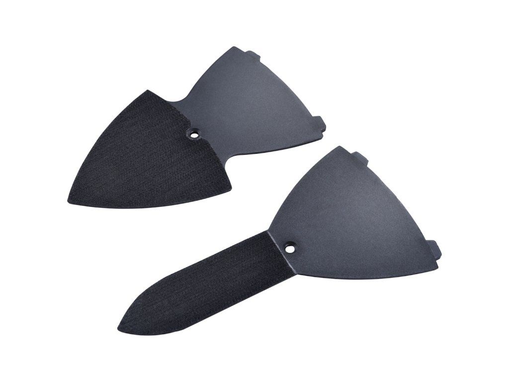 2) Dreiecksaufsatz: zum Schleifen von Nuten und schmalen Stellen mit größeren Flächen, z.B. die Seiten von Brettern in einem Zaun...