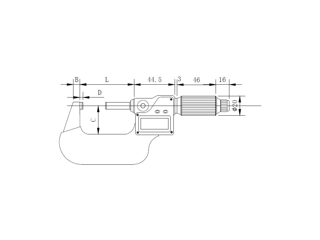 Digitale Mikrometerschraube, mit Ratsche, lackiertem Stahlrahmen, Hartmetall-Taster mit Messflächen mit einer Ebenheit von 0,3 μ und Schutzgrad IP65 für schnelles Messen - dank der Spindelsteigung von 2 mm pro Umdrehung wird die Messung deutlich schneller. Im LCD-Display mit großen Ziffern werden die Messwerte absolut angezeigt, es kann aber auf relative Messung umgeschaltet werden, wobei auch zwischen metrischen und Zoll-Messungen umgeschaltet werden kann. Durch automatische Abschaltung wird die Lebensdauer der Batterie verlängert. Grundzubehör: S-Schlüssel, Grundtaster, Batterie LR44, Garantieschein, Bedienungsanleitung, Kalibrierzertifikat, Kunststoffetui.