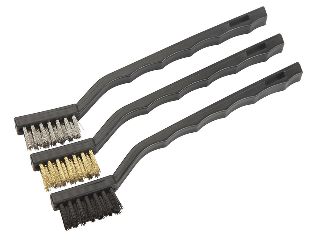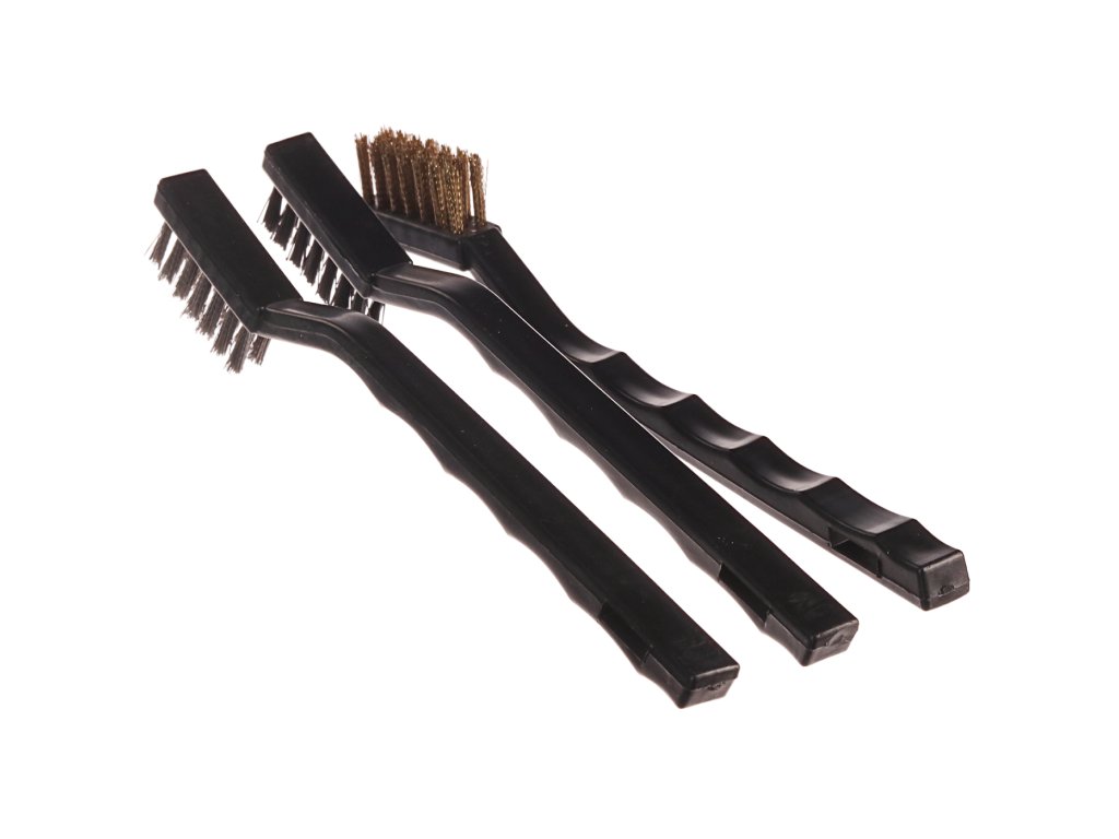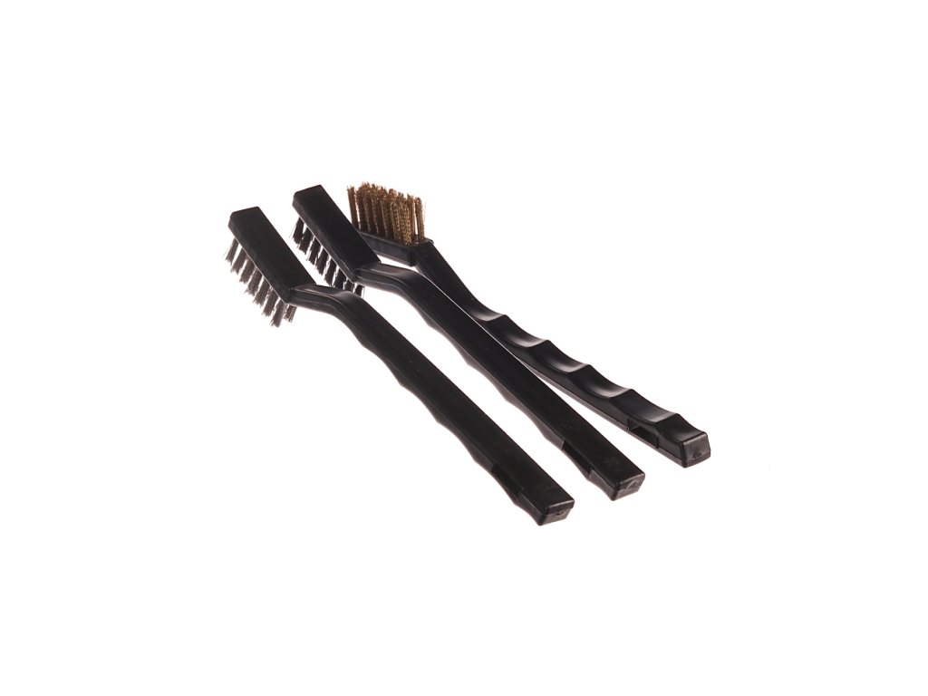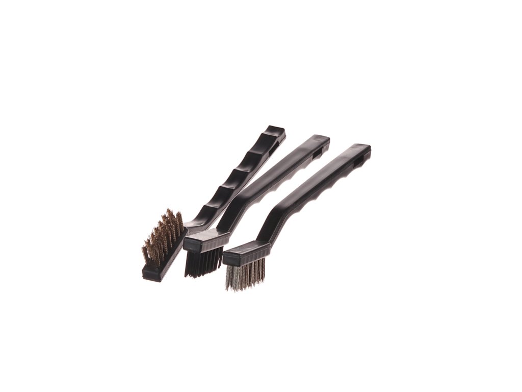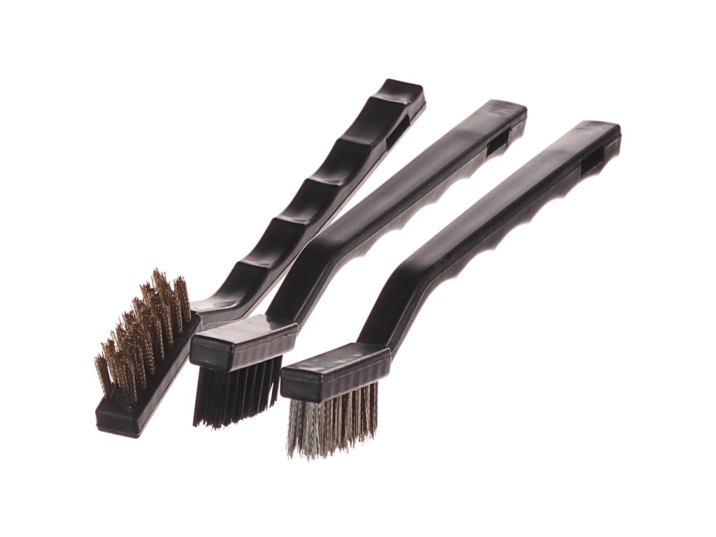 Zum Entfernen von Rost und alter Farben geeignet. Im Set enthalten: 1 St. 180 mm Nylonbürste; 1 St. 180 mm Stahlbürste und 1 St. 180 mm Edelstahlbürste. Arbeitsbereich der Bürsten 8x32x14 mm. Im Blister verpackt.