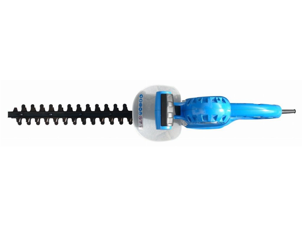 Praktische Elektroschere zum Trimmen/Formen von Hecken, Ziersträuchern etc. (→ max. Schnittleistung: 14 mm).