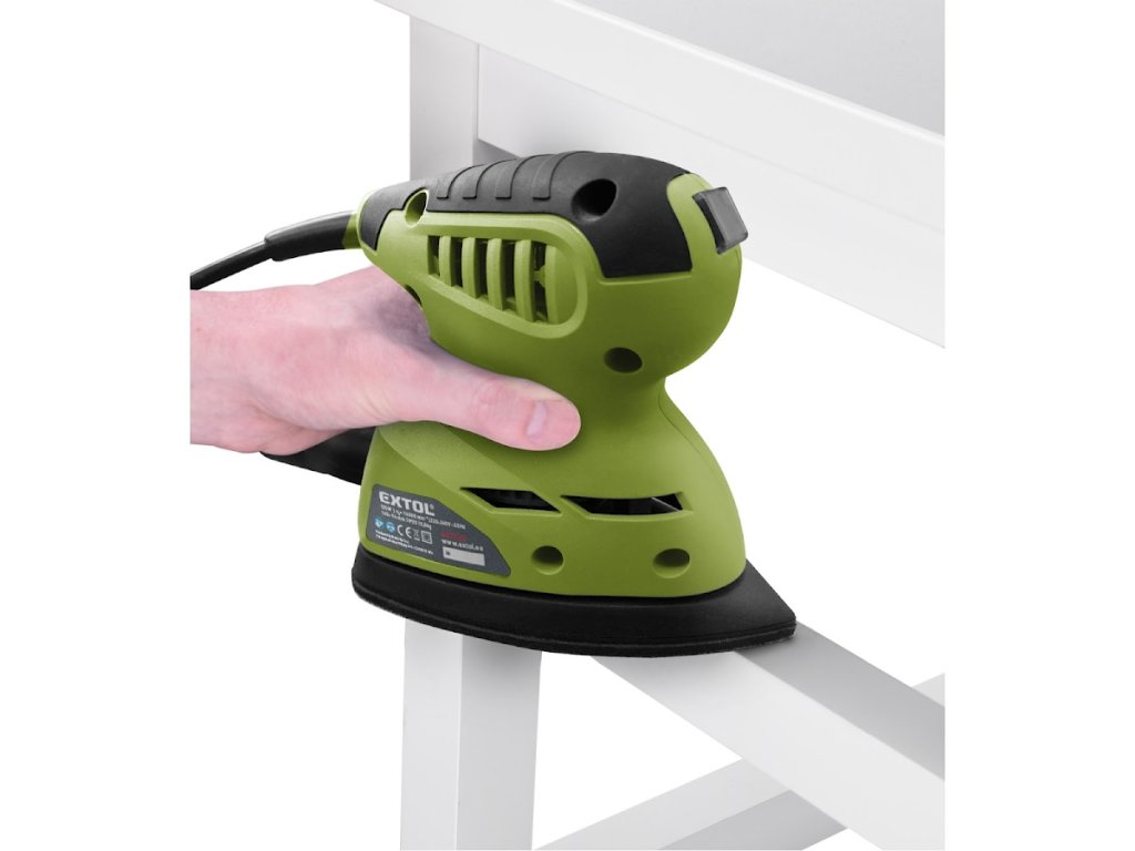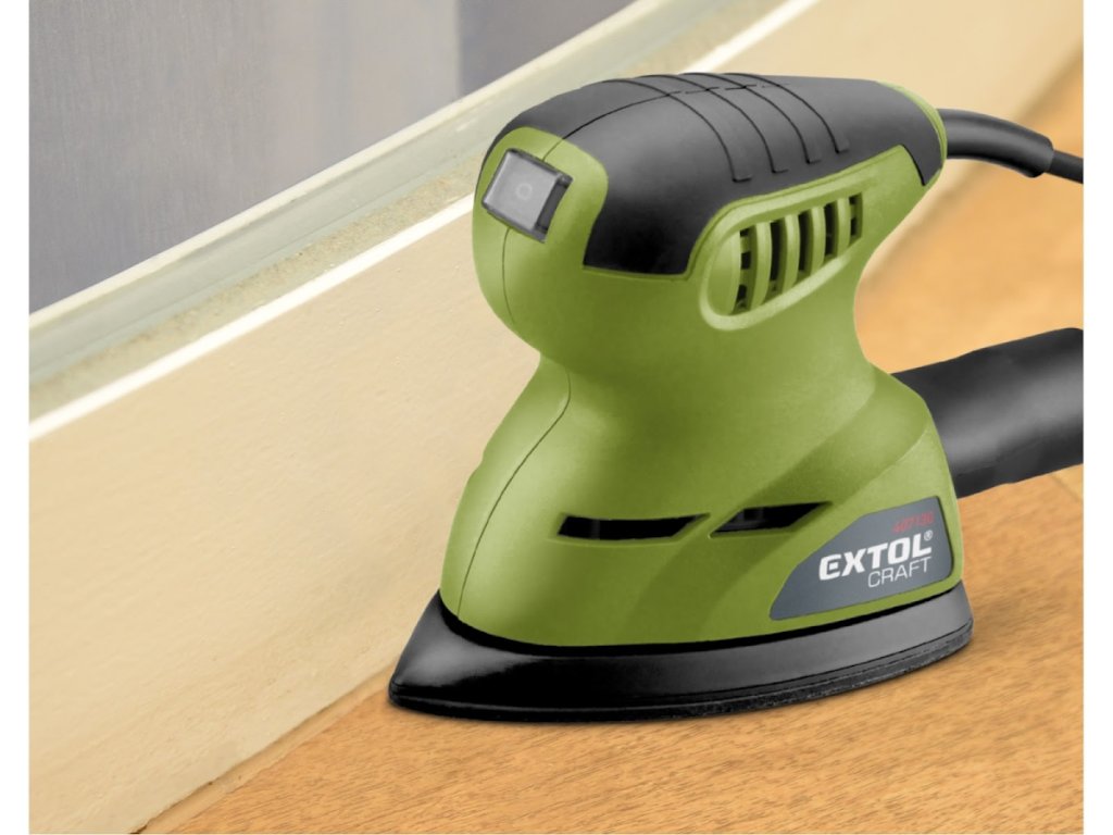 Der Einhand-Delta-Exzenterschleifer ist für den kleinflächigen und Eckenschliff von Holzwerkstoffen, Metallen, Kunststoffen, Versiegelungen und Lacken konzipiert. Es eignet sich gut für schwer zugängliche Stellen wie das Schleifen in den Ecken von Fenstern, das Schleifen von abgerundeten Oberflächen und kleineren Flächen.... Der Schleifer ist nicht zum Schleifen von Trockenbauwänden geeignet.