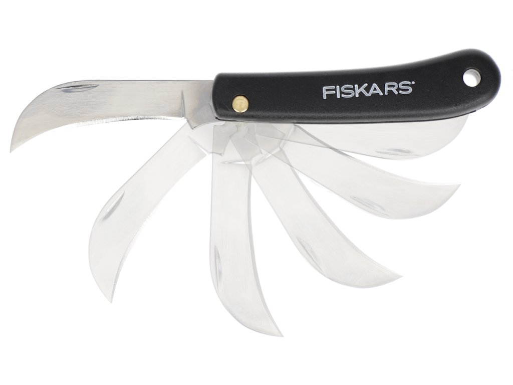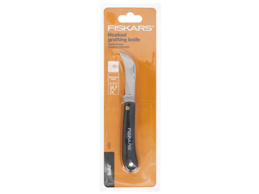 Gartenmesser aus hochwertigem Kohlenstoffstahl. Zum Schneiden und Beschneiden von Bäumen und anderen Pflanzen. Klinge aus hochwertigem Kohlenstoffstahl. Griff aus Kunststoff mit Messingniete. Länge: 170 mm. Gewicht: 52 g. Original Fiskars Nummer: 125880. Bezeichnung: K62