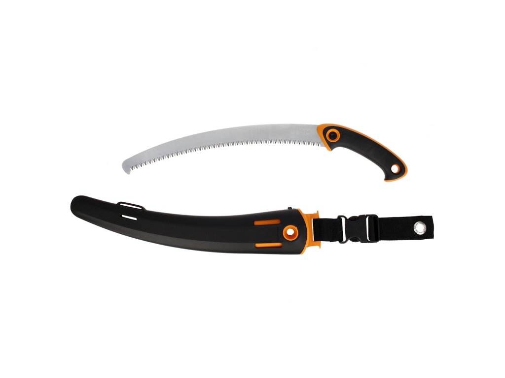 Die professionelle Astsäge ist für einen Pull-to-Hand-Schnitt ausgelegt. Die Klingen sind aus professionellem SK5-Kohlenstoffstahl gefertigt und haben einen Innenschliff. Der robuste Griff verfügt über eine komfortable SoftGrip-Oberfläche, die integrierten Zähne eignen sich zur Spanabfuhr. Die Säge hat eine ausgewogene Gewichtsverteilung. Höhe: 98 mm, Länge: 490 mm. Gewicht: 230 g. Bezeichnung: SW330. Original Fiskars Nummer: 123330.