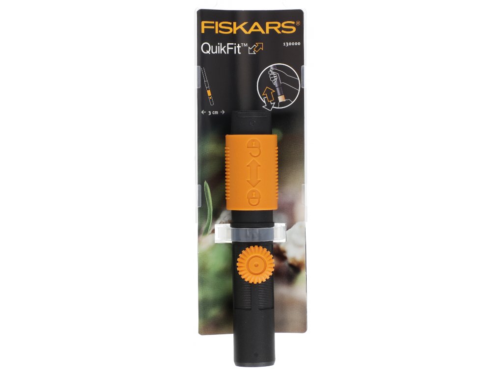 Mit dem Universaladapter können Sie auch Anbaugeräte anderer Hersteller anschließen. Das QuikFit-System ermöglicht es Ihnen, verschiedene Gartengeräte mit einem einzigen Griff zu kombinieren. Ursprüngliche Fiskars-Nummer: 130000.