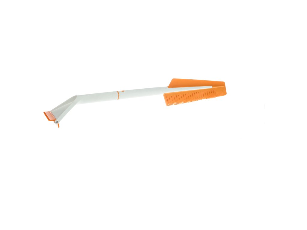 Der Eiskratzer ist von der Bürste abnehmbar. Die Bürste ist aus Silikon, so dass es keine Kratzer gibt. Auf der anderen Seite befindet sich ein Abstreifer, um Wasser und nassen Schnee zu entfernen. Die Schaberklinge beschädigt die Schutzschicht des Glases nicht und passt sich der Krümmung des Glases an. Länge des Schabers: 10 cm. Gesamtlänge: 67 cm. Original Fiskars Nummer: 143062.