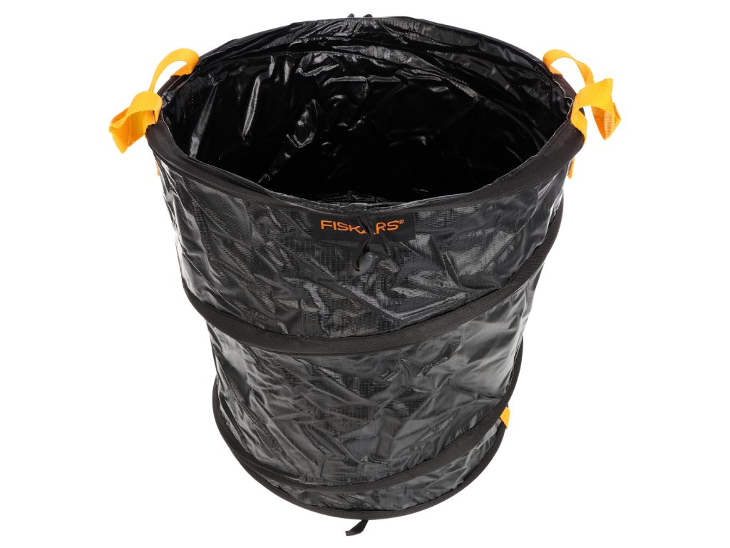 Der Gartenkorb eignet sich hervorragend zum Aufräumen von feuchten Gartenabfällen wie Laub oder Rasenschnitt. Er kann zur Aufbewahrung zu einem 8 cm hohen Ballen gefaltet werden. Der Korb hat eine interne Feder, die ihn aufgeklappt hält. Es ist schimmel- und reißfest, hat eine lange Lebensdauer und ist leicht zu reinigen. Breite: 400 mm, Höhe des gefalteten Korbes: 80 mm, Höhe des offenen Korbes: 460 mm, Gewicht: 600g. Original Fiskars Nummer: 135041.