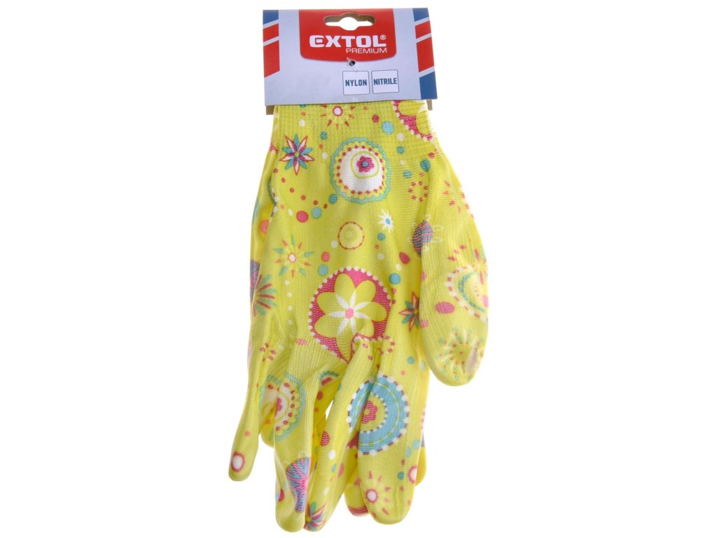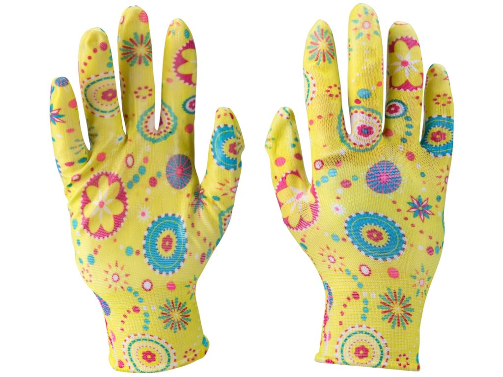 Nylonhandschuhe, Nitrilbeschichtung an Handinnenflächen und Fingern mit erhöhter Beständigkeit gegen Öle und Säuren, für Garten sowie Hausreinigung.