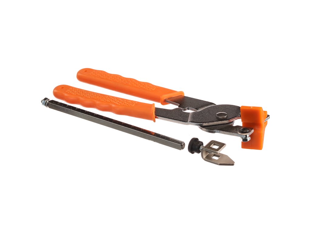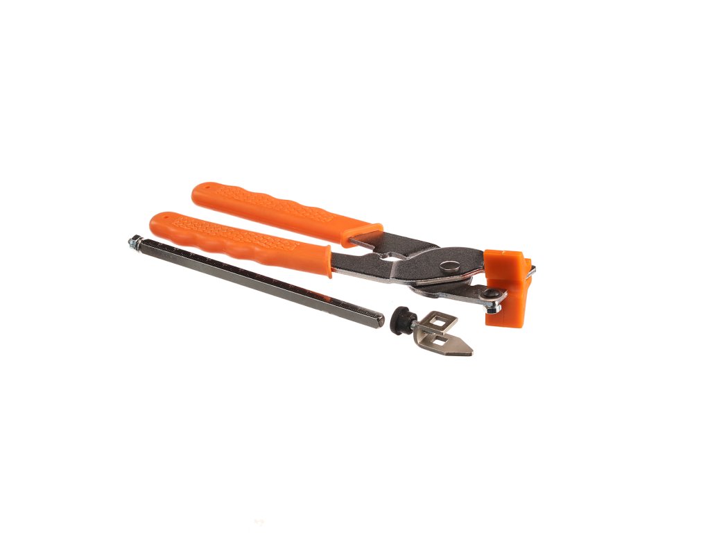 Zange zum sicheren und genauen Abbrechen von Glastafeln und Keramik, zum Schneiden bis zu einer Stärke von 16 mm. Die Zange ist mit einem Anschlag mit Maßstab versehen. Länge 200 mm. Kunststoffgriffe ermöglichen einen bequemen und sicheren Halt.