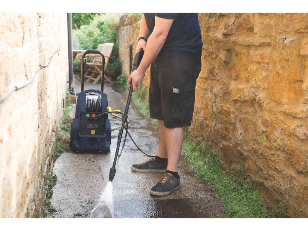 Der luftgekühlte Induktionsmotor sorgt für hohe Zuverlässigkeit und Energieeffizienz. Stopp/Start-Funktion zur automatischen Aufrechterhaltung des konstanten Drucks. Die selbstansaugende Funktion ermöglicht den Anschluss des Luftreinigers an andere Wasserquellen, einschließlich Wasserfässer. Eingebaute Räder und einziehbarer Griff für einfachen Transport. Eingebaute Halterung für Pistole, Netzkabel und Schlauch. Betriebsdruck: 110 bar. Maximaler Druck: 165 bar. Maximale Durchflussmenge: 7,1 l/min. Länge des Druckschlauchs 8 m. Länge des Stromkabels 10 m. Gewicht 18 kg. Das Paket enthält feste und rotierende Bürsten, Turbodüsen, einen 2-×-Verlängerungsaufsatz und eine Schlauchschnellkupplung.