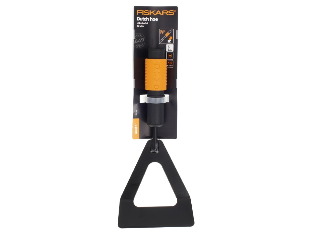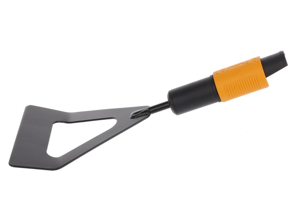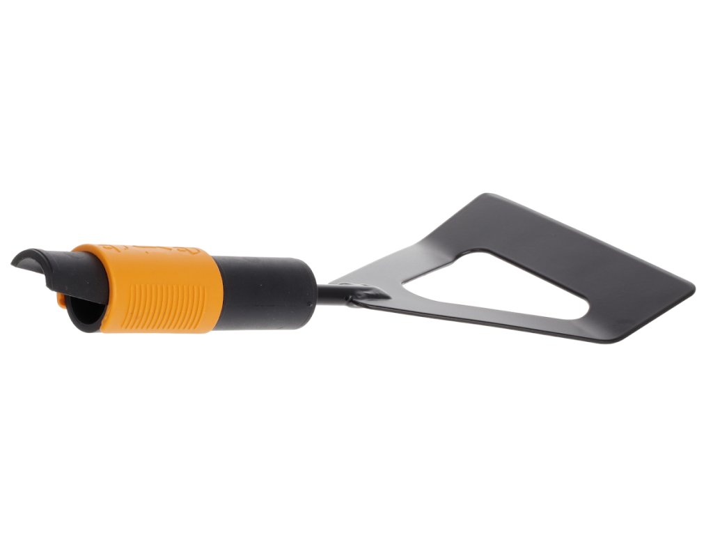 Die Hacke hat eine scharfe Kante zum Entfernen von Unkraut, zum Lockern des Bodens, zum Formen von Reihen vor der Aussaat oder zum Entfernen von Moos von Terrassen. Klinge aus gehärtetem Borstahl. Empfohlener QuikFit L 1000661 Griff. Höhe: 28 mm, Länge: 295 mm, Breite: 125 mm, Gewicht: 241 g. Alte Fiskars-Nummer: 136502.