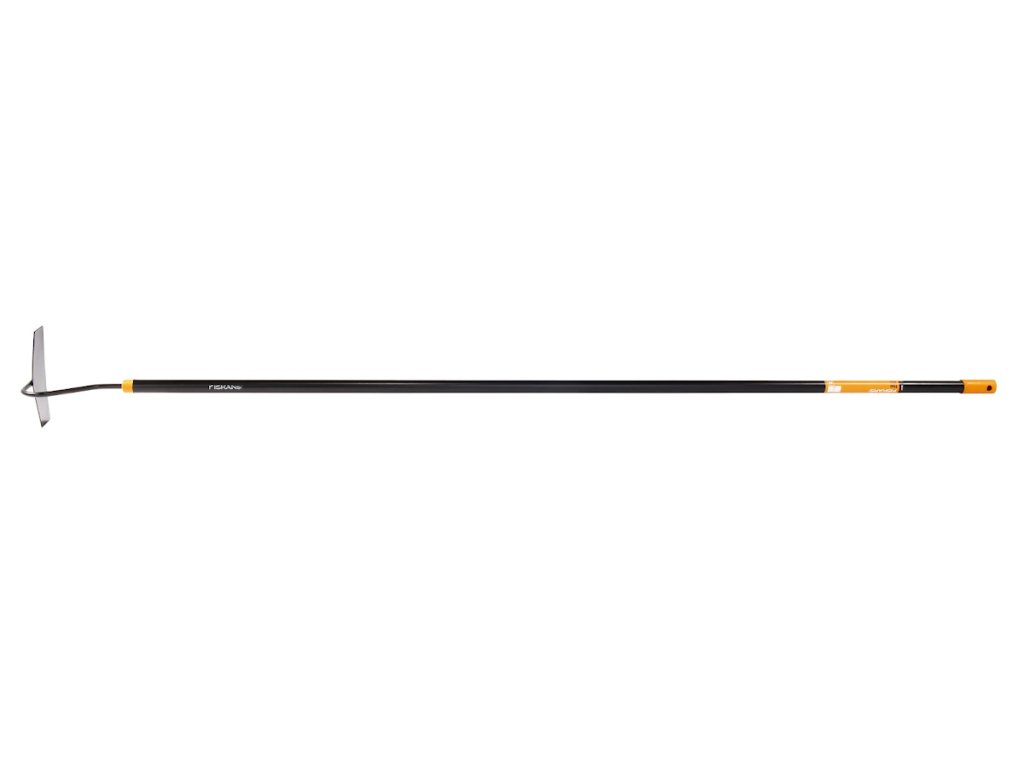 Die Hacke eignet sich zum Entfernen von Unkraut zwischen Reihen oder Pflanzen und zum Aufbrechen des Bodens für die Bearbeitung. Die Klinge besteht aus gehärtetem Kohlenstoffstahl, der Griff aus Aluminium. Breite: 158 mm, Länge: 1550 mm, Gewicht: 620 g. Original Fiskars Nummer: 135713.