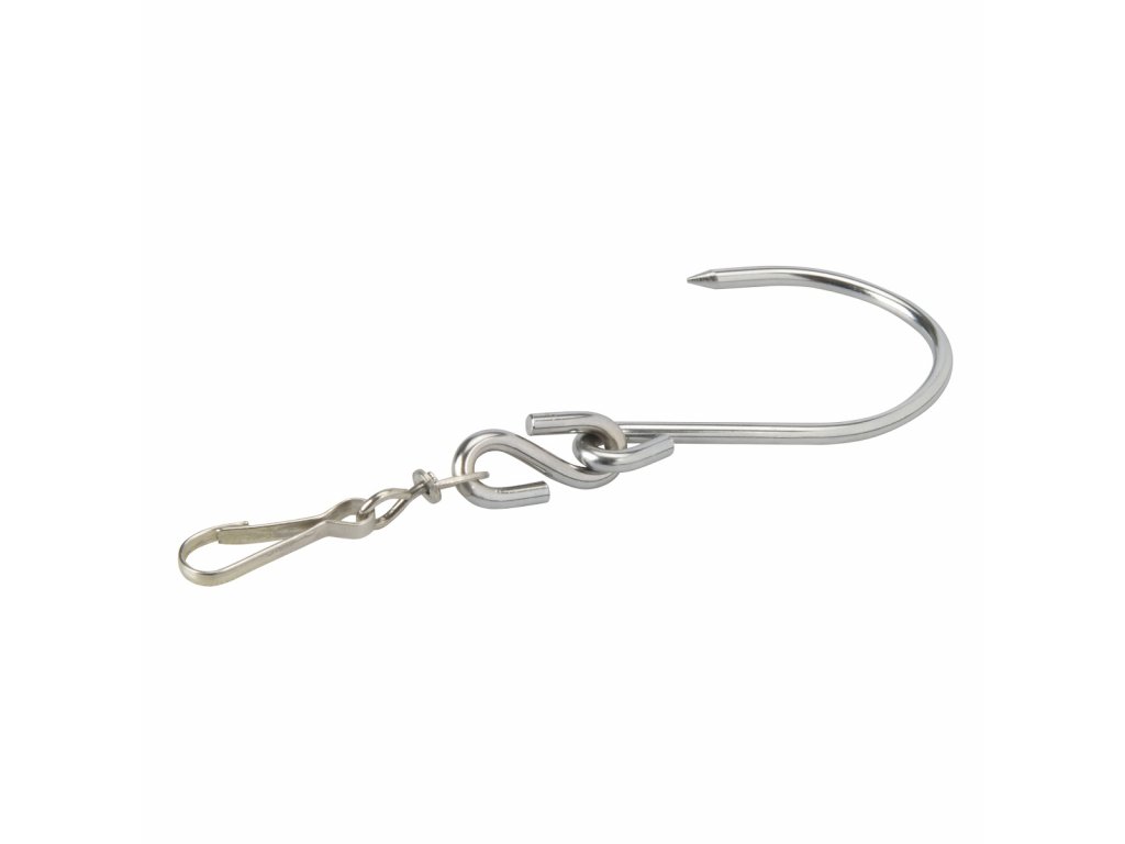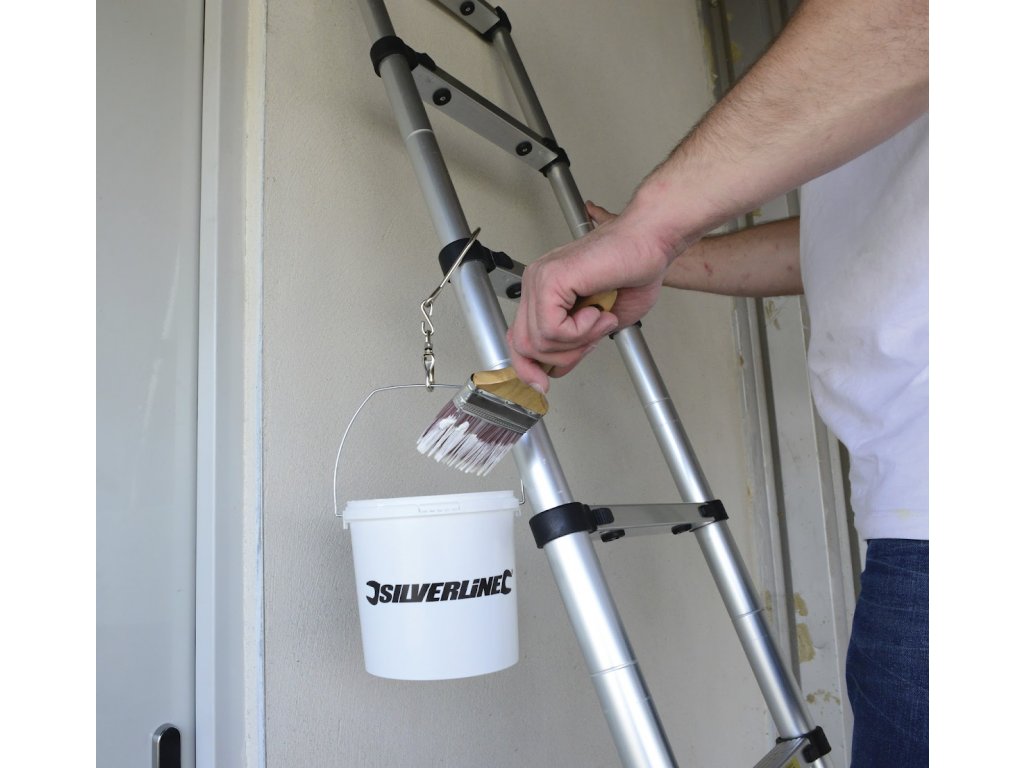 Hängender, drehbarer Haken mit Karabiner mit einer Gesamtlänge von 180 mm, ein unverzichtbarer Helfer beim Malen, Ernten von Früchten und anderen Arbeiten im Garten. Geeignet für alle Arten von Leitern. Belastbarkeit 5 kg.