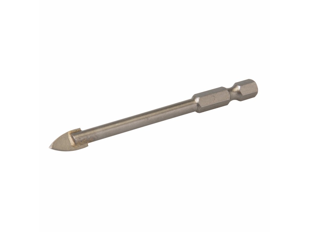 Hartmetallbohrer mit scharfer Spitze und 6 mm (1/4") Sechskantschaft. Für saubere und präzise Löcher in Keramikfliesen, Glas und Spiegeln. Niedriger Bohrdruck und häufige Schmierung optimieren die Ergebnisse.