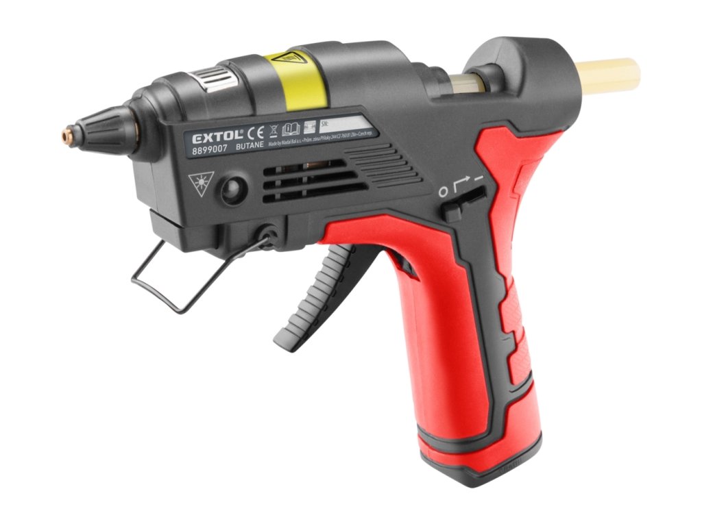 Die Gasleim-Heißschmelzpistole ist zum Schmelzen und Auftragen von Schmelzklebstoff konzipiert, um Papier, Kork, Holz, Leder, Stoff, Kunststoff, Keramik usw. schnell zu kleben. Die Klebepistole verfügt über ein sehr sparsam ausgelegtes Heizelement, das ähnlich wie elektrische Klebepistolen funktioniert. Wenn die Pistole auf Betriebstemperatur erhitzt wird, erlischt die Hauptflamme und nur die kleine Zündflamme bleibt eingeschaltet. Sobald die Temperatur unter einen bestimmten Wert fällt, wird die Hauptflamme automatisch wieder gezündet und die Pistole auf Betriebstemperatur erhitzt. Als Treibstoff verwendet die Waffe Feuerzeuggas, das in Zeitungsläden leicht erhältlich ist. Die Pistole ist mit einem Füllventil der dritten Generation ausgestattet, das eine einfache Befüllung ohne unnötige Verluste gewährleistet. Der Verzicht auf ein Netzkabel erhöht den Nutzungskomfort und die Bewegungsfreiheit.