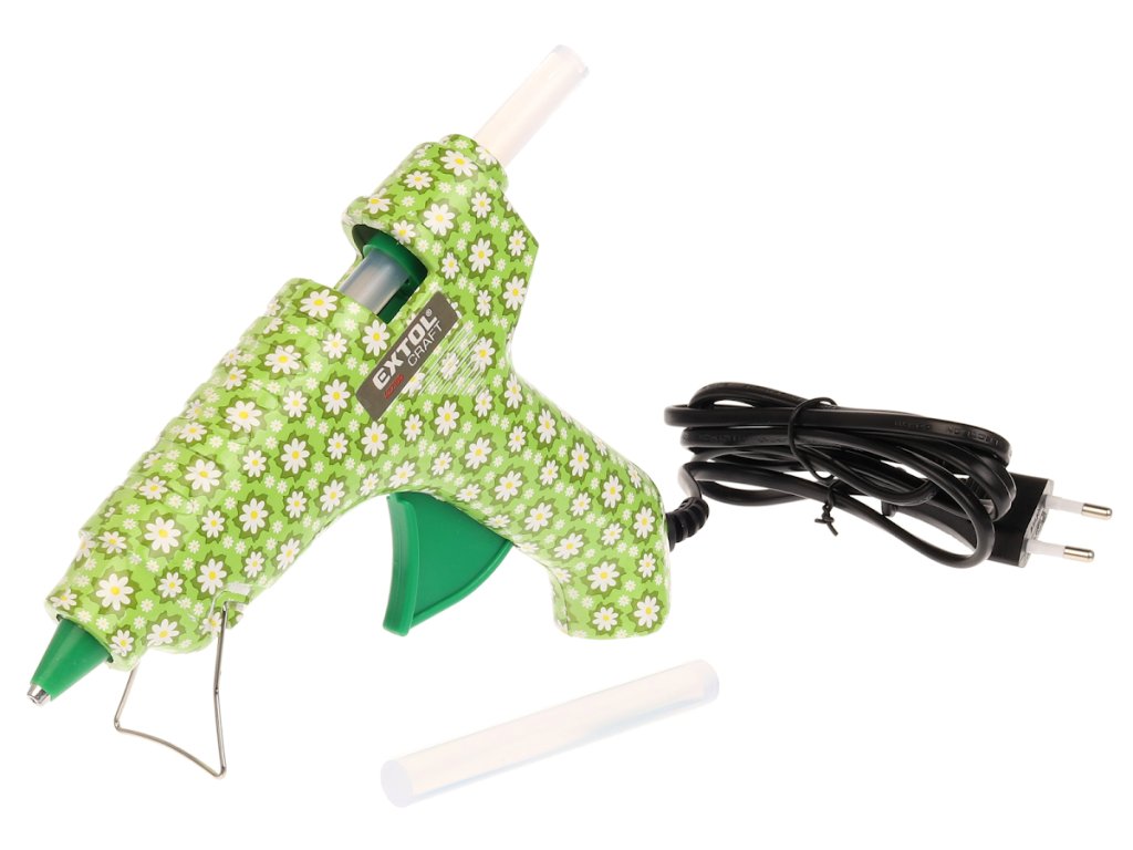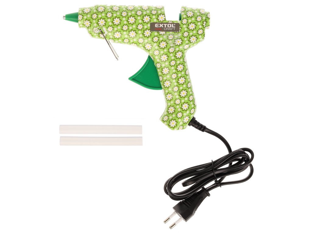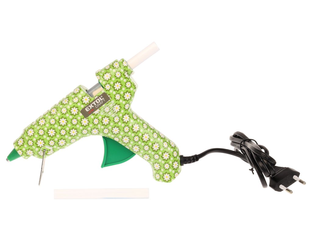 Heißklebepistole zum Schmelzen und Auftragen vom Schmelzkleber, schnelle Verklebung von Papier, Kork, Holz, Leder, Textil, Kunststoff, Keramik usw. Mechanischer Vorschub mit Hebel für sensitive, stufenlose und präzise Schmelzkleberdosierung auf die gewünschte Stelle. Nicht für den gewerblichen und industriellen Einsatz bestimmt. Spannungsversorgung 230 V/50 Hz, Stromverbrauch 40 W, Temperatur ca. 200 °C, Aufheiztemperatur 3 – 5 min., Kleberdurchfluss 8 – 12 g/min., Durchmesser Klebstoffstange 11 mm, Schutzklasse II, Schutzart IP2.