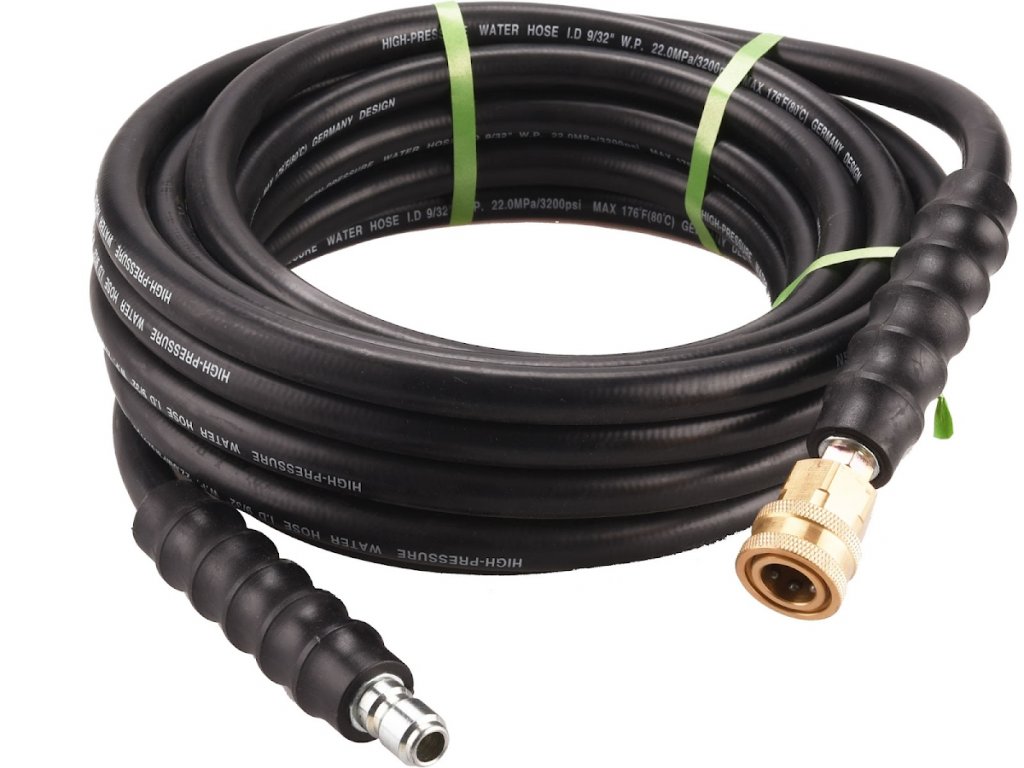 max. 220 bar, max. 80°C, stahlverstärkter Schlauch