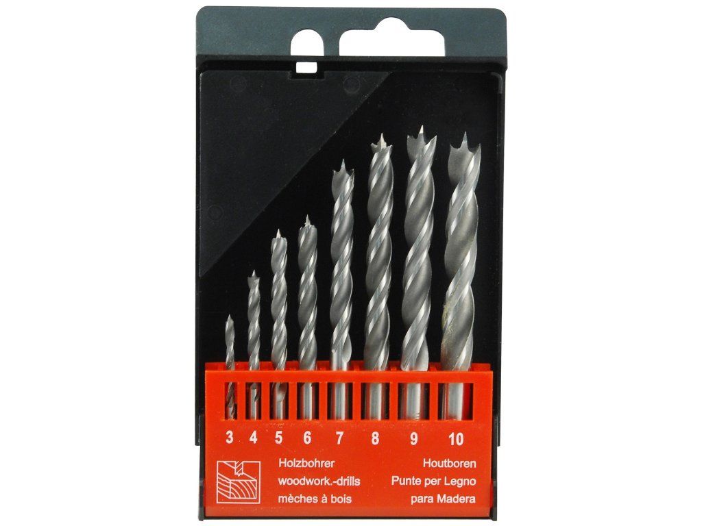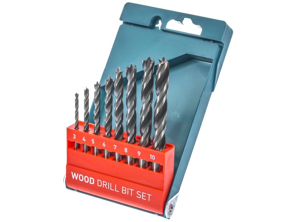 Bohrersatz aus CrV-Stahl, Durchmesser 3, 4, 5, 6, 7, 8, 9, 10, zum Bohren in Naturholz, Hart- und Weichholz, Hartplatten, Sperrholz- und Spanplatten geeignet. Eine doppelte Schraubenlinie erhöht die Bohrleistung und die Bohrerlebensdauer.