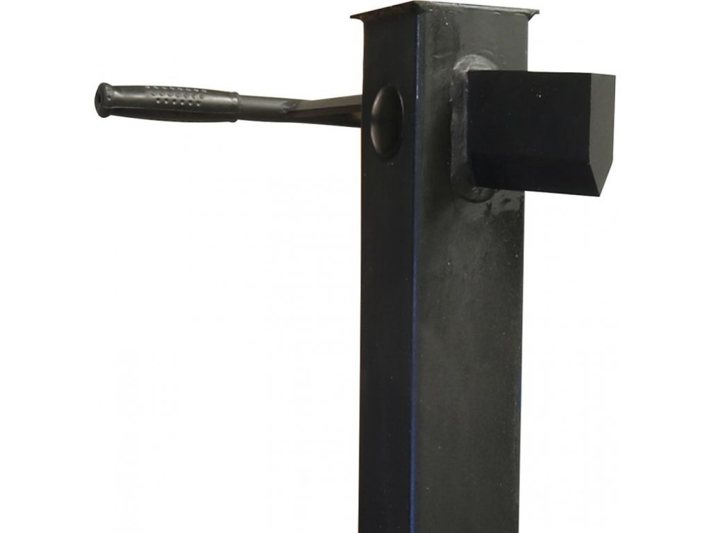 Aufbau: robuster Stahlrahmen, leistungsstarke Hydraulikpumpe, Spaltsäule 90 x 90 cm, eingehängter Arbeitstisch (L x B: 310 x 300 mm), Ablageflächen (2), Zuggriff, Sockel inkl. Transporträder.