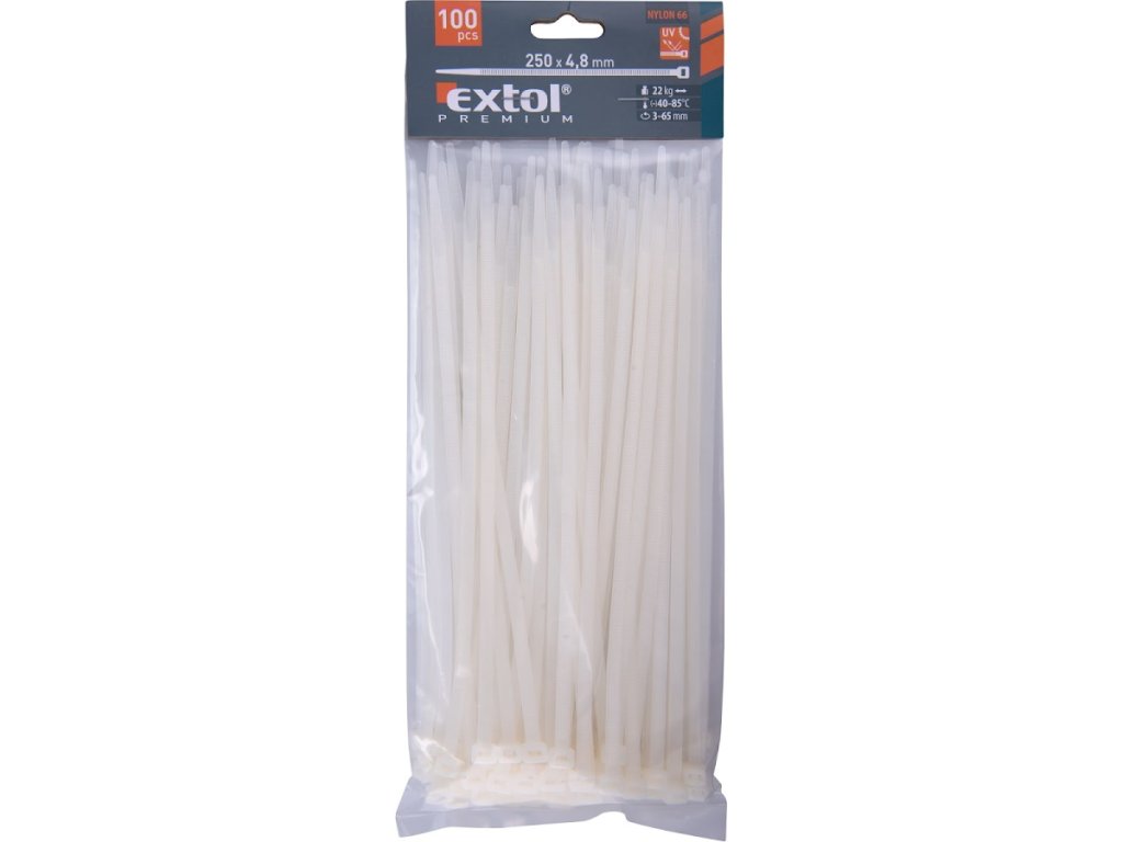 Kabelbinder weiß, 250 × 4,8 mm, 100 Stück, Nylon PA66