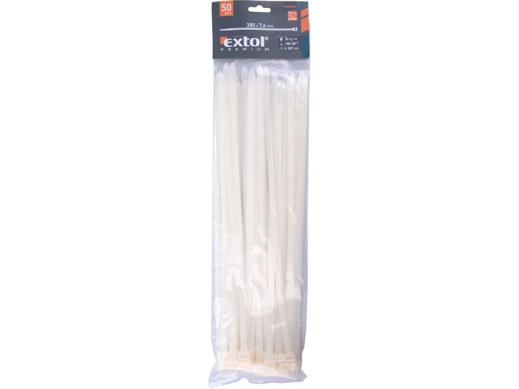 Kabelbinder weiß, 380 × 7,6 mm, 50 Stück, Nylon PA66