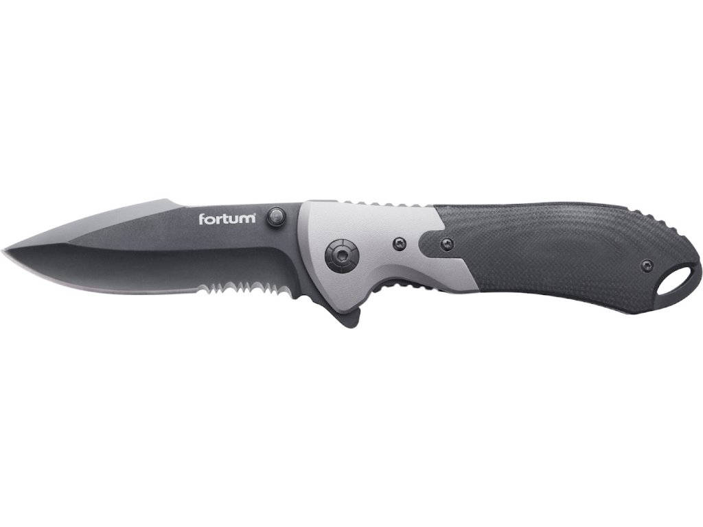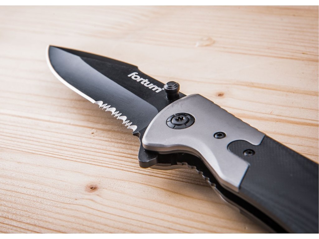 - teilweise gezahnte Klingenschneide zum leichteren Schneiden harter Materialien in der Art einer Säge
