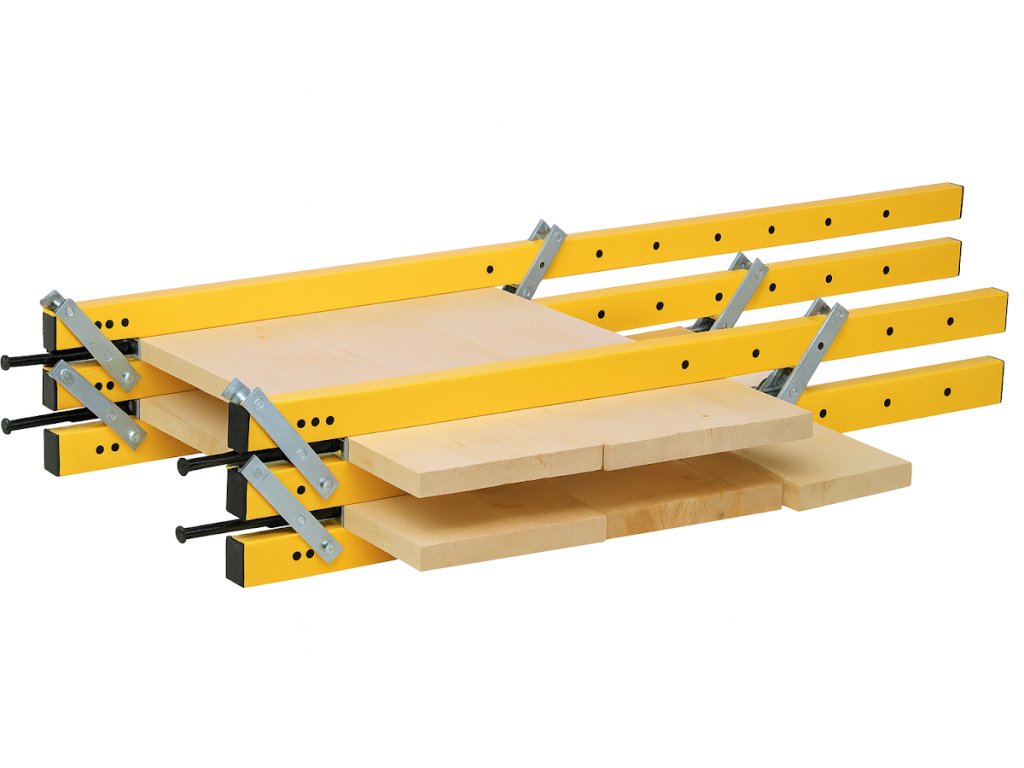 • einzigartige Konstruktion – Zusammenbau und Abbau des Stapels ohne Reiterdemontage, lediglich durch Verschiebung der oberen Klemme unabhängig von der Fugenplattendicke (durch Gebrauchsmuster 5257 geschützt) • breiter Einsatzbereich – für Dicken 0 – 50 mm (bis 25 mm mit Unterlage), Maximalbreite bis zu 120 cm • robuste Ausführung – vollkommene Ebenheit und konstanter Druck beim Kleben • Spannschraube mit Trapezgewinde – Garantie einer hochwertigen Klemmung • Zangenspannung – die Fugenplatte wird automatisch von vier Seiten gepresst - deswegen kommt nicht zu deren Durchbiegung • Stapelfähigkeit – Möglichkeit des Klebens in vielen Schichten übereinander • (1 × Stange, 2 × Reiter)