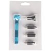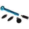 Geeignet für kleine Klempnerarbeiten. Aluminiumkörper mit Länge 70/100 mm, 4 auswechselbare Schraubspitzen mit M8-Gewinde × 1,25 mm verschiedener Formen aus POM-Kunststoff (Polyazetal), die Bekratzen und Beschädigung des reparierten Teils verhindern.
