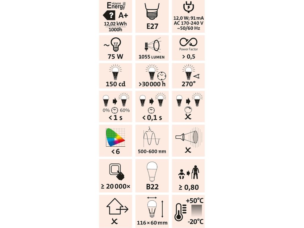 LED-Leuchtmittel classic, 12 W, 1055 Lumen, E27, warmweiß
