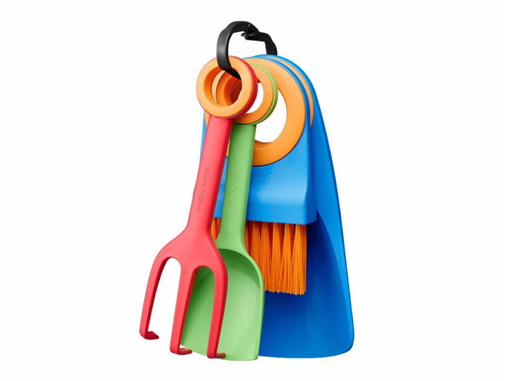 Das MyFirstFiskars-Werkzeugset enthält vier hochwertige, leichte Werkzeuge, die auf Kinderhände abgestimmt sind. Das Set enthält eine Schaufel, einen Grubber, eine Kehrschaufel und eine Bürste. Die langen Griffe der Schaufel und des Grubbers ermöglichen mehrere Griffe, die Löcher sind extra groß zum Aufhängen zur einfachen Aufbewahrung. Das Werkzeug enthält keine Kleinteile, um die Sicherheit zu gewährleisten, es ist für Kinder von 3 bis 9 Jahren geeignet.