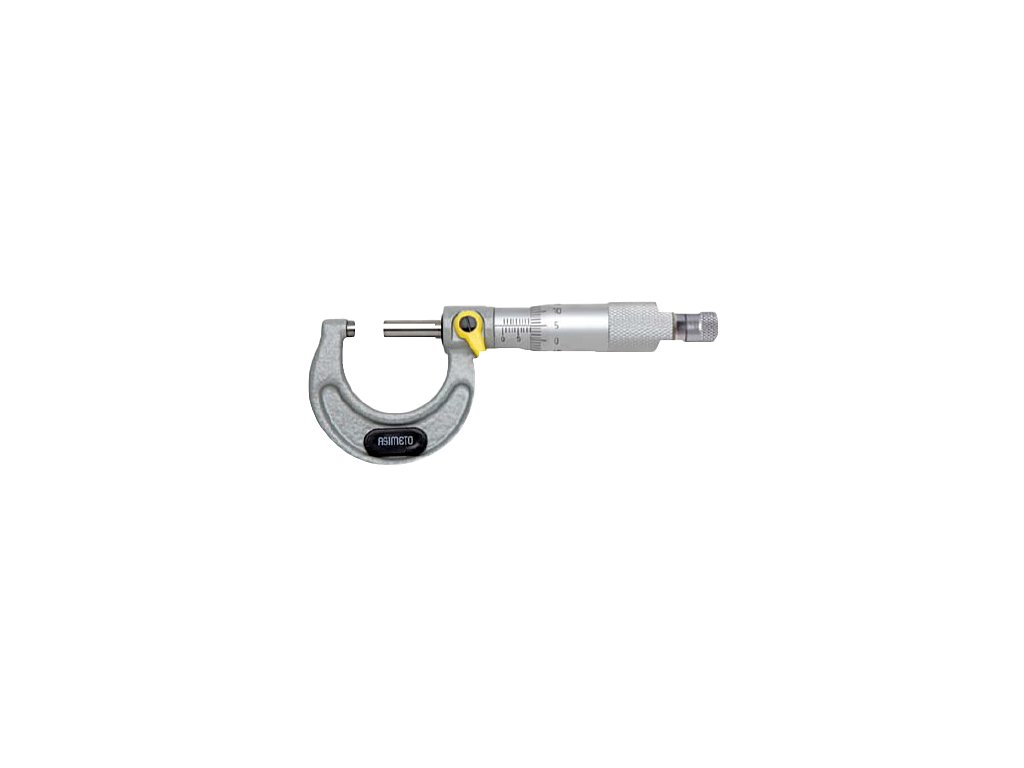 Analog-Bügelmikrometer mit Knarre, Hartmetall-Messflächen mit einer Ebenheit von 0,6 µm und lackiertem Metallrahmen. Grundzubehör: Garantieschein, Bedienungsanleitung, Kalibrierungszertifikat, Kunststoffetui.