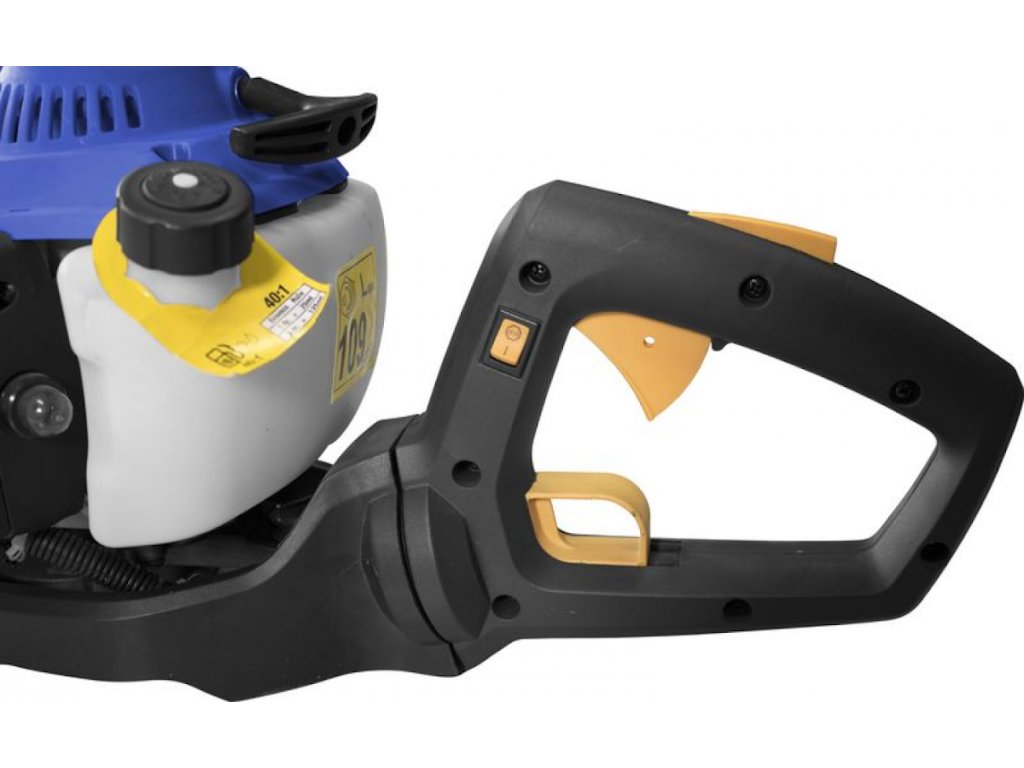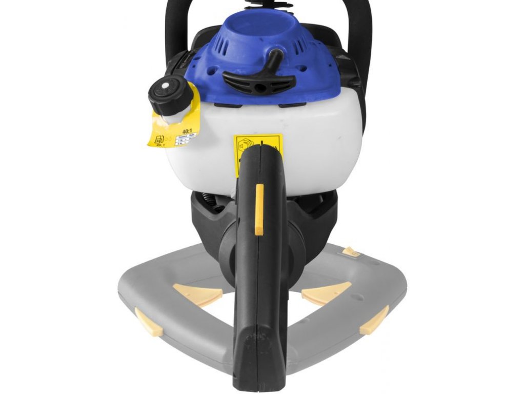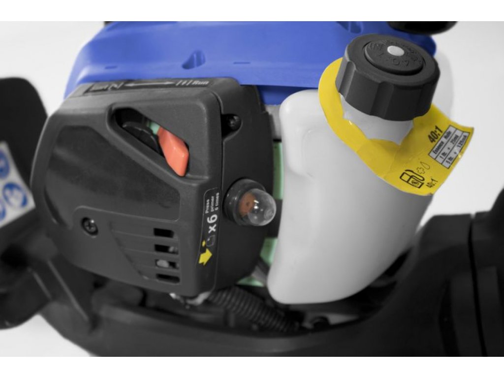 Einzylinder-2-Takt-OHV-Motor 0,75 kW, Rückwärtsstartsystem, PRIMER (manuelle Kraftstoffpumpe), 0,46-l-Kraftstofftank (Verbrauch bei voller Leistung: 0,6 l/h).