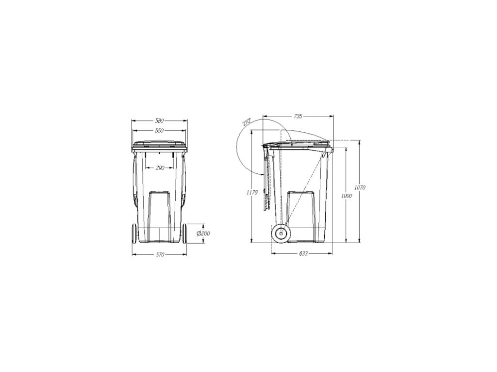 Müllcontainer 240 l, PH, ČER. Die Körper und Deckel der Behälter werden mit der Injektionstechnologie aus hochdichtem Polyethylen hergestellt, sind einfarbig und zeichnen sich durch UV- und Wasserbeständigkeit aus. Polyethylen hoher Dichte gewährleistet eine hervorragende Beständigkeit des Produkts gegen die Auswirkungen von klimatischen Faktoren und Temperaturschwankungen. Für die Herstellung von Behältern werden recycelbare, umweltfreundliche Materialien verwendet. Die verwendeten Farbstoffe enthalten keine Schwermetalle. Entleerungssystem - DIN. Die CE-Kennzeichnung ist eine Erklärung des Herstellers, dass der vom Behälter erzeugte Geräuschpegel den Anforderungen der Richtlinie Nr. 2000/14/EG des Europäischen Parlaments entspricht und 79,1 dB beträgt. Das Produktzertifikat wurde von der TÜV Product Service GmbH nach EN 840 ausgestellt. Volumen: 240 l Belastbarkeit: 96 kg Raddurchmesser: 200/250 mm Material: Kunststoff Farbe: Schwarz Der 240 l fassende Mülleimer, der vor dem Eingang eines jeden Hauses nicht fehlen darf, besteht aus frostbeständigem, langlebigem und langlebigem Kunststoff. Die Konformitätsbescheinigung und die Erklärung des Geräuschemissionswerts von Geräten, die für den Außenbereich bestimmt sind, finden Sie auf der Registerkarte "DOKUMENTE".