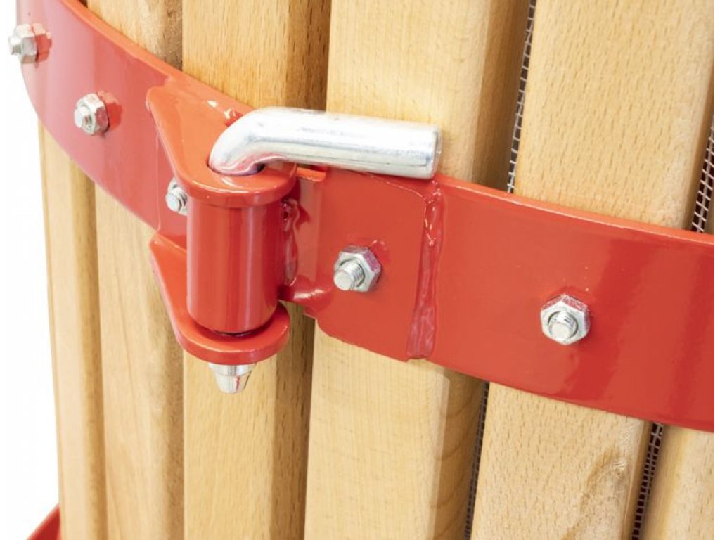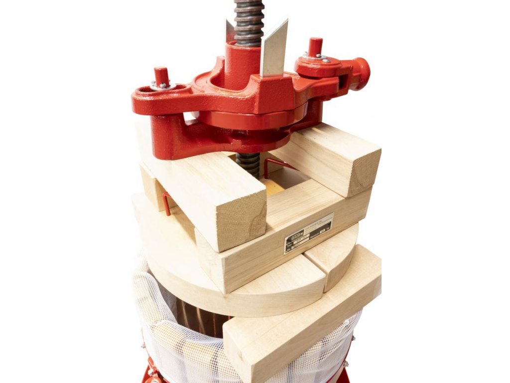 Bequemes (effektives) Pressen von zerkleinerten Früchten mit einem Hebel, der mit einem Ratschenmechanismus ausgestattet ist.