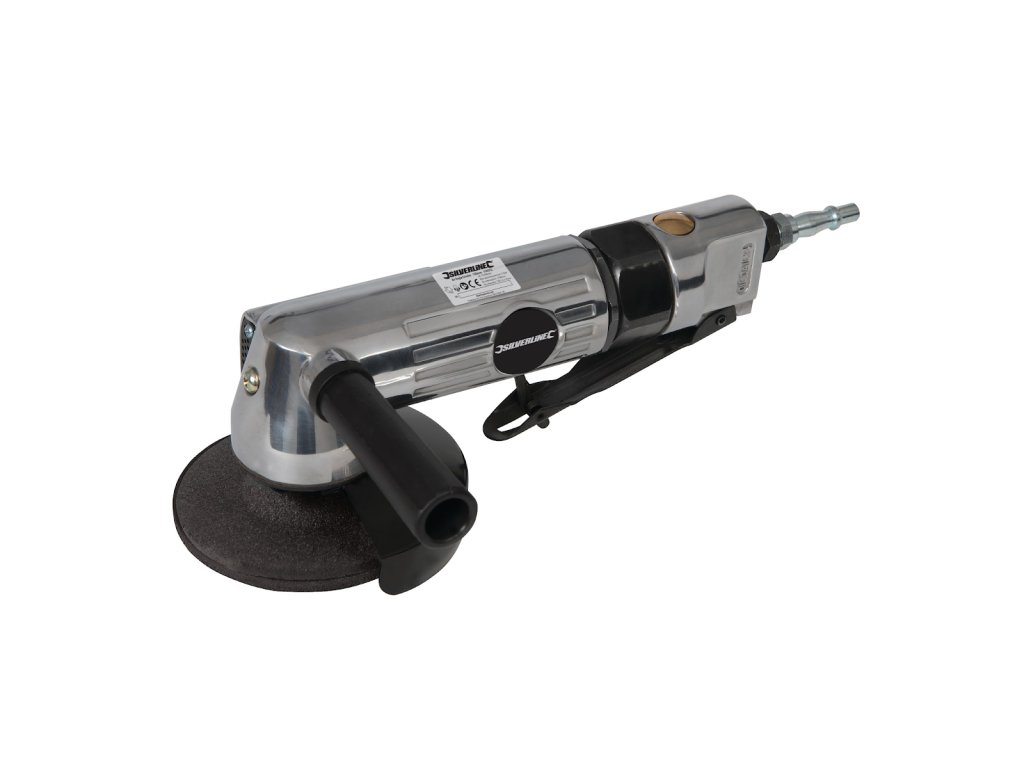 Langlebige Druckgusskonstruktion mit Stahlklingenschutz, seitlichem Griff für feste Kontrolle. Lieferung mit Schleifscheibe, Sicherungsschlüssel und Stiftschlüssel. Das Paket enthält sowohl britische als auch europäische 1/4"-Schnellkupplungen. Leerlaufdrehzahl 10.000 min-1. Luftverbrauch 113 l/min (6 cfm).