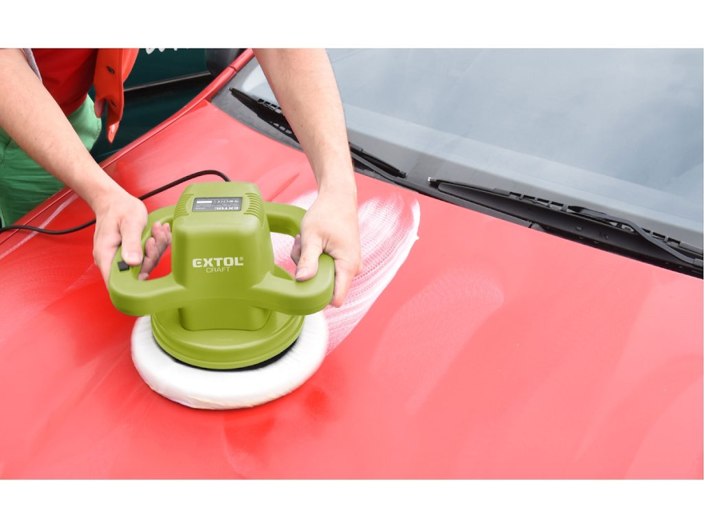 Die Karosseriepoliermaschine ist in erster Linie für das Hochglanzpolieren von Fahrzeugkarosserien, aber auch für Boote, Böden, Möbel usw. mit entsprechenden Polierpasten oder Emulsionen konzipiert. Die Poliermaschine wird mit austauschbaren Hülsen verwendet, die auf die Polierscheibe aufgeschraubt sind. Die Scheibe führt eine rotationsexzentrische Bewegung aus, die die Bewegung der Hand nachahmt, wodurch die Einarbeitung des Poliermaterials in die polierte Oberfläche beschleunigt und die sichtbaren Konturen der Scheibe auf der polierten Oberfläche entfernt werden. Eine Applikationshülse wird verwendet, um die Polierpaste auf die polierte Oberfläche aufzutragen, und eine Polierhülse wird verwendet, um sie auf ihren endgültigen Glanz zu polieren.