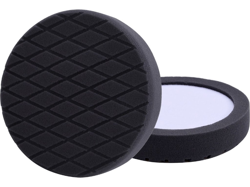 Sehr weiche Finish-Polierscheibe zum abschließenden Polieren auf absoluten Glanz und zum Auftragen von flüssigen Wachsen und Konservierungsmitteln. Mit Antihologrammpaste wird es verwendet, um Hologramme nach dem Polieren zu entfernen. Die Oberfläche der Klinge ist mit Hilfe eines Rautenmusters in viele unabhängige Vorsprünge unterteilt. Dies erleichtert die Luftbewegung zwischen der Schaumstoffscheibe und dem Lack, wodurch die Wärme schnell von der zu bearbeitenden Oberfläche abgeführt wird und gleichzeitig eine hohe Arbeitseffizienz erhalten bleibt, ähnlich wie bei einer flachen Scheibe.